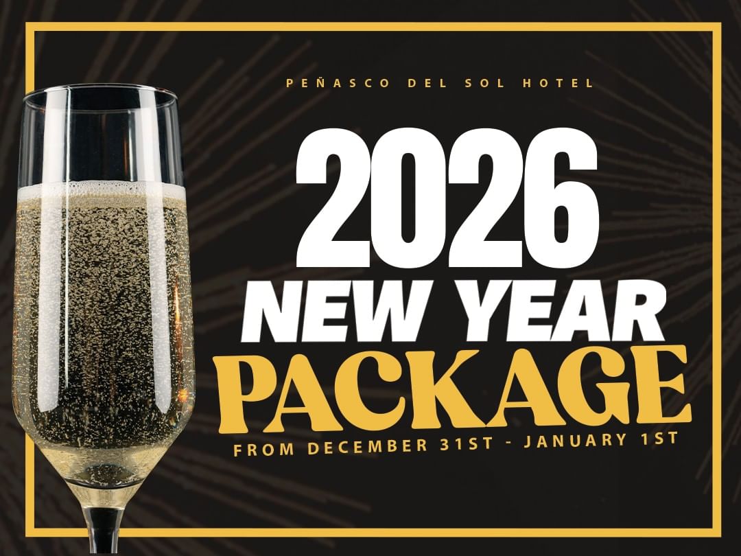 Celebrate the arrival of 2026 at Peñasco del Sol with an all-inclusive New Year’s Eve package featuring dinner for two, overnight stay, live DJ party, midnight toast, valet parking, and breakfast.